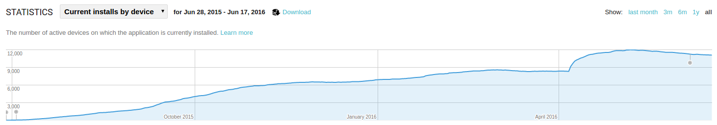 That spike in April is due to a mention in a Jenna Marbles video where she was reviewing silly apps (about 40 seconds in). She was, in fact, reviewing the iOS app that looks and acts similar, but her viewers didn’t know any better, and I got a bunch of downloads. I didn’t know who Jenna Marbles was (despite that her videos have literally billions of views on YouTube), but now I do. Great!