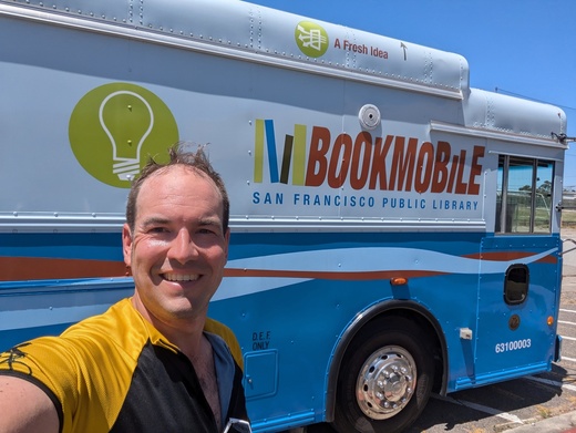 The final boss was the Treasure Island bookmobile, open 2pm-6pm on Wednesdays. Since I’d biked to every branch and the main library, I wasn’t going to make an exception. Treasure Island is only accessible by bike from the east, so I biked over the Golden Gate Bridge and the Richmond - San Rafael Bridge to get to the eastern half of the Bay Bridge.