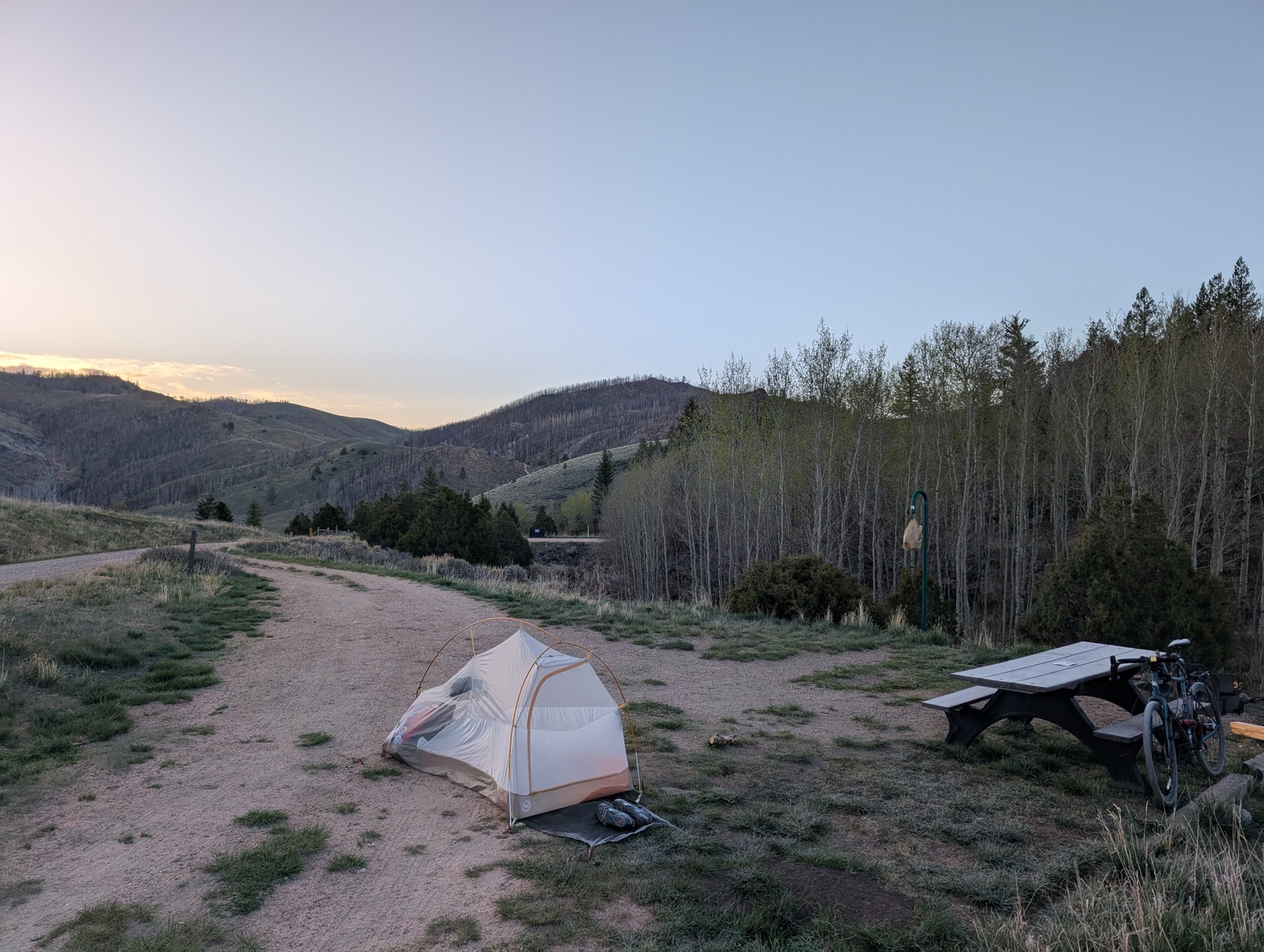 I camped only a few times – it was too cold and rainy for most of my trip, and I was fortunate to have the option to stay in a motel instead. When I did camp, the stars were beautiful and the mornings were chilly.