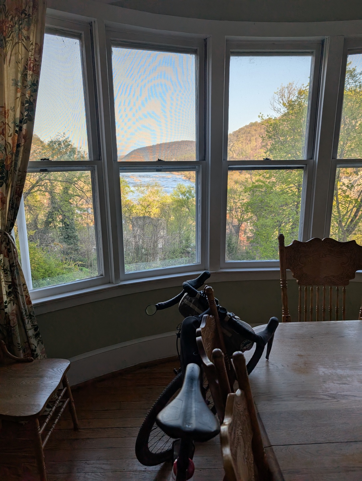 On the first night of the tour in Harper’s Ferry, J and I stayed in a Potomac Appalachian Trail Club “cabin”, one of the ~50 cabins the group maintains for folks hiking the AT. J had to get a $40 membership, and we stayed in a four-bedroom house with a fabulous view for $100/night. Wow!