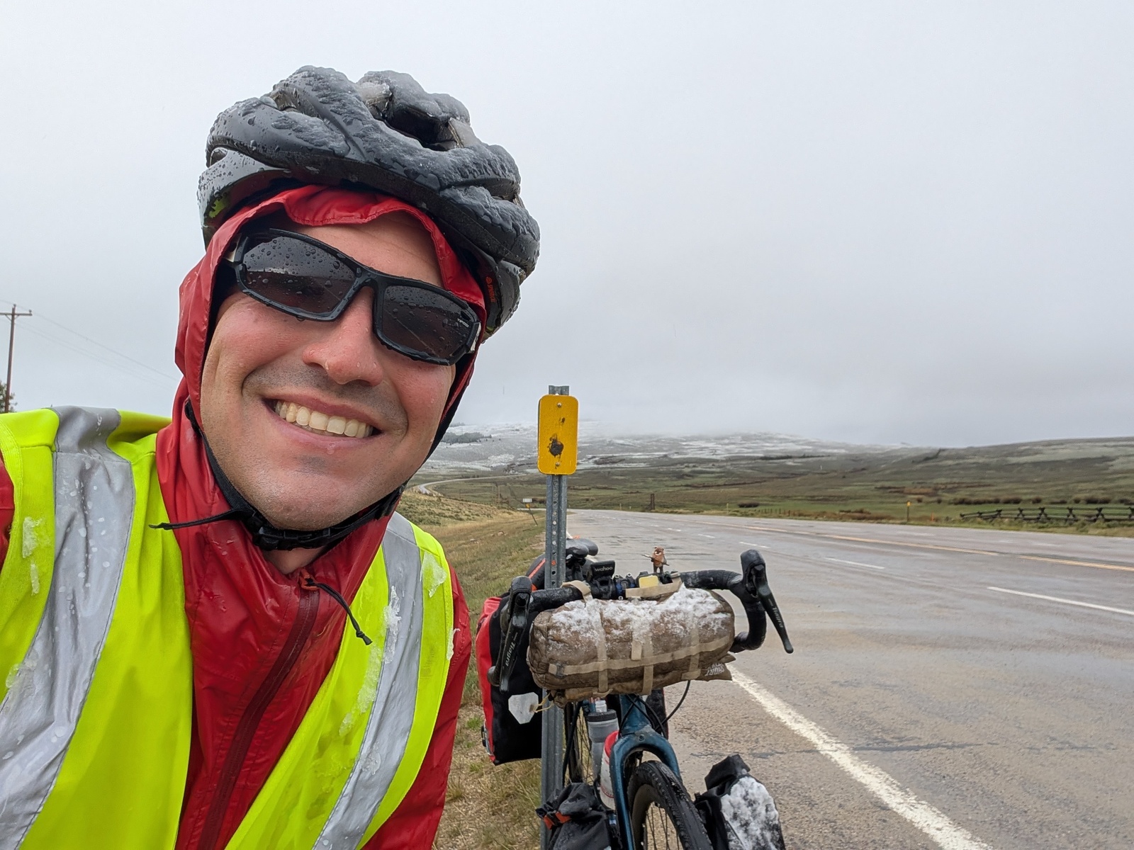 I got caught in my third and by far the worst snowstorm in Montana, too. The route that day featured a couple of large climbs with no towns along the way, and as I crested the first hill, the sky turned black. With nowhere to go but forward, I started the second climb with snow dumping in my face.