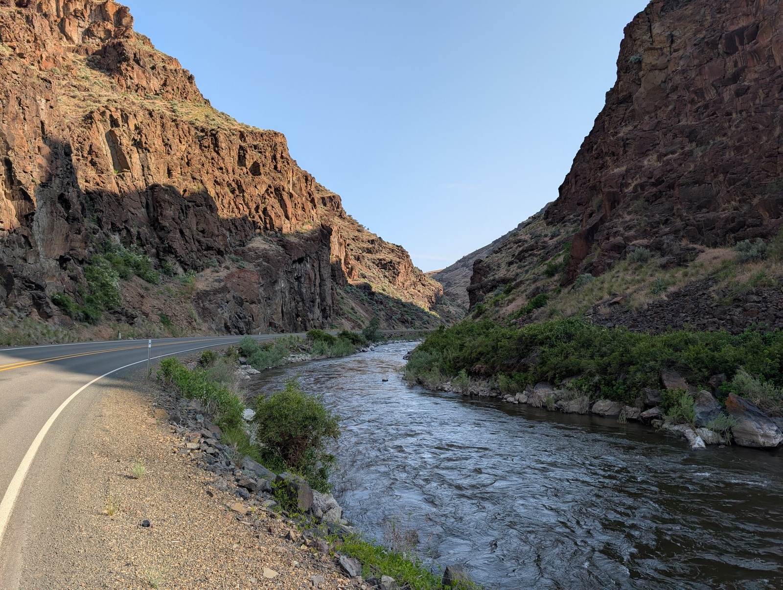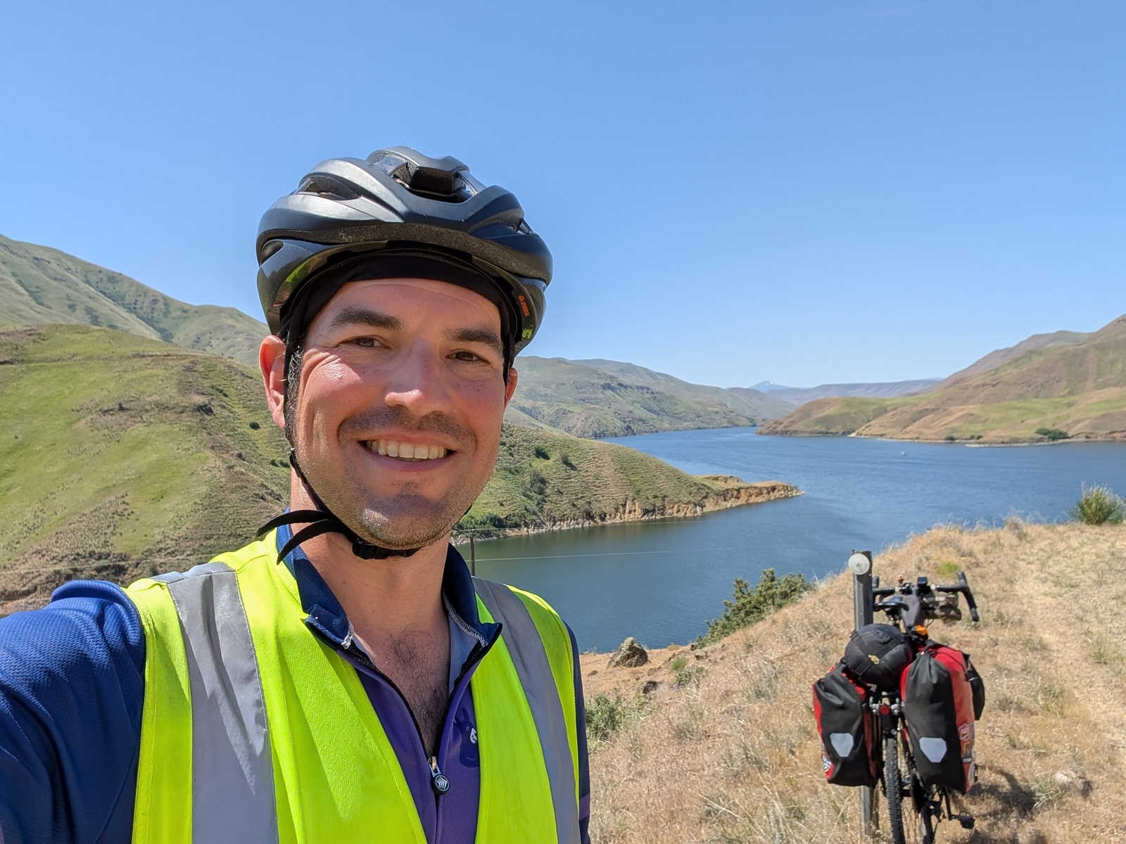 As I descended back to ~4000’ above sea level, the days started getting hotter again. I crossed into Oregon along the Snake River on a 100-degree day. Yikes! The few unpleasant hot days I experienced and the heat waves that the country has experienced since made me glad to have done this trip in the spring rather than the summer. While riding in the snow is decidedly unpleasant, I’d rather be cold than warm and dehydrated, and for the most part, I didn’t have to deal with any bugs!