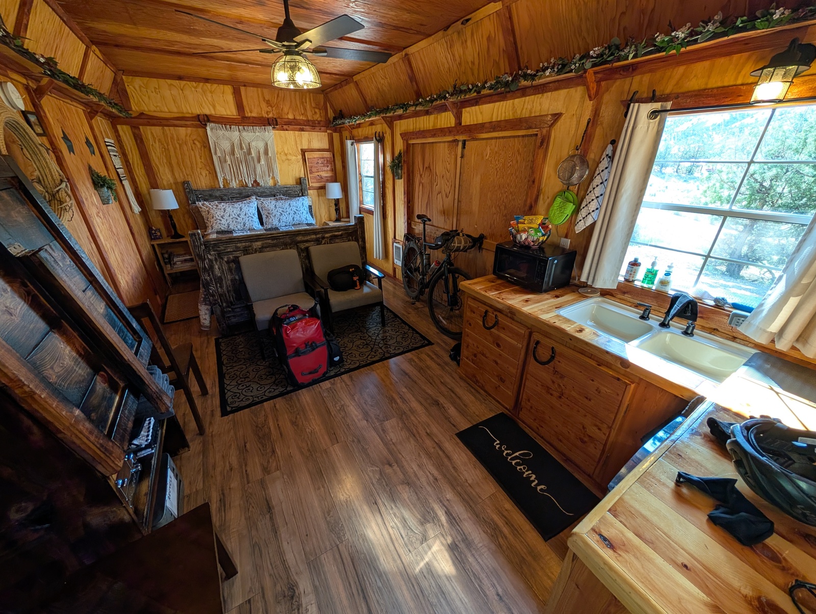 I stayed in a few Airbnbs, which had the added benefit of being able to cook a fresh meal for myself. One of those Airbnbs was a tiny cabin outside of Mitchell, OR that had an outdoor shower, an outhouse, and a grill.