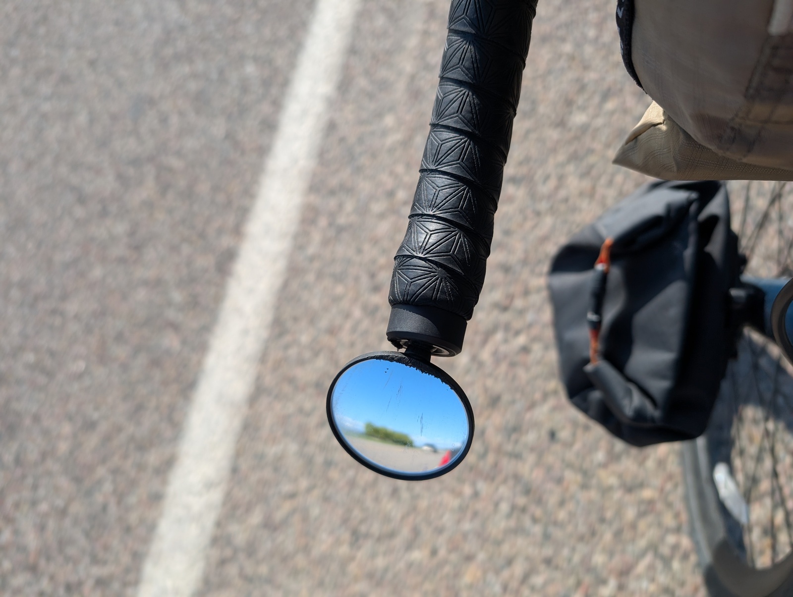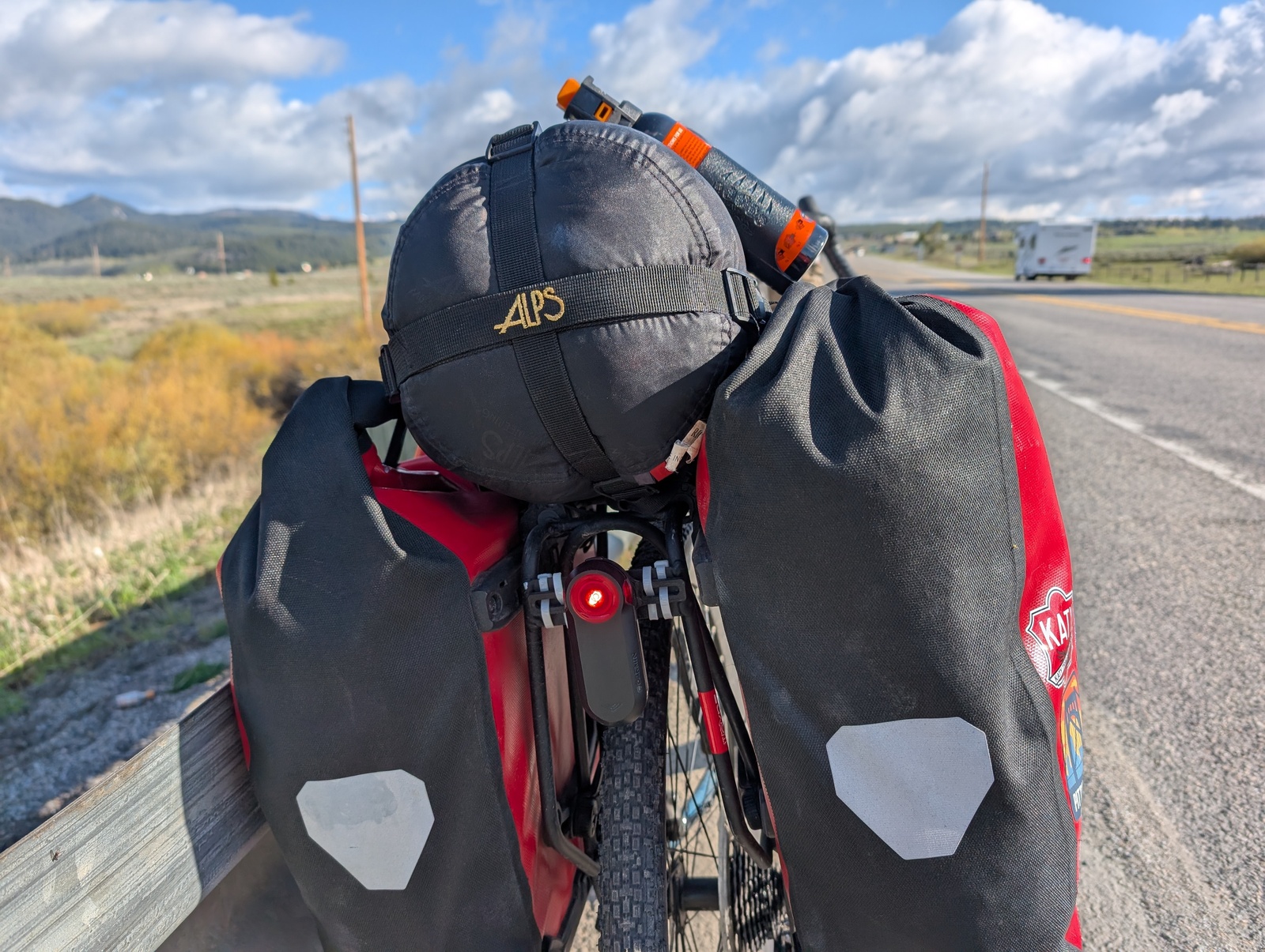 I used a Garmin RTL515 tail light, and it was a game changer. It’s a tail light with a radar built into it, and every time a car would approach from behind, I got an alert and a chirp on my bike computer. When a car was approaching above a certain speed, the chirp was much louder. The scariest thing about riding on highways is when a car passes quickly without giving extra space to a cyclist in the shoulder (getting “buzzed”). With the radar, I had a warning that a car was coming so I could check my rear view mirror, assess whether they would give me extra space, and move further into the shoulder if necessary. Worst case, I wouldn’t be surprised if a car did buzz me. The radar also gave me the relative position of cars coming up behind me, so I knew without looking back whether it might be safe to change lanes – of course, if the radar were clear, I’d still check over my shoulder!