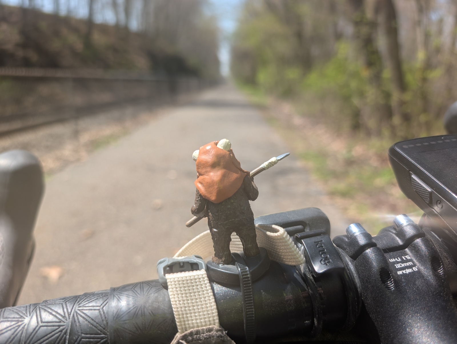 My kids packed me companions for the road. I had a tiny model Ewok named Cherry Nose ziptied to my handlebar like a prow maiden and a bracelet that I wore throughout the trip. These are well-traveled keepsakes, and I’m glad they survived the journey!